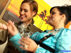 Bukkake lesbos drenched